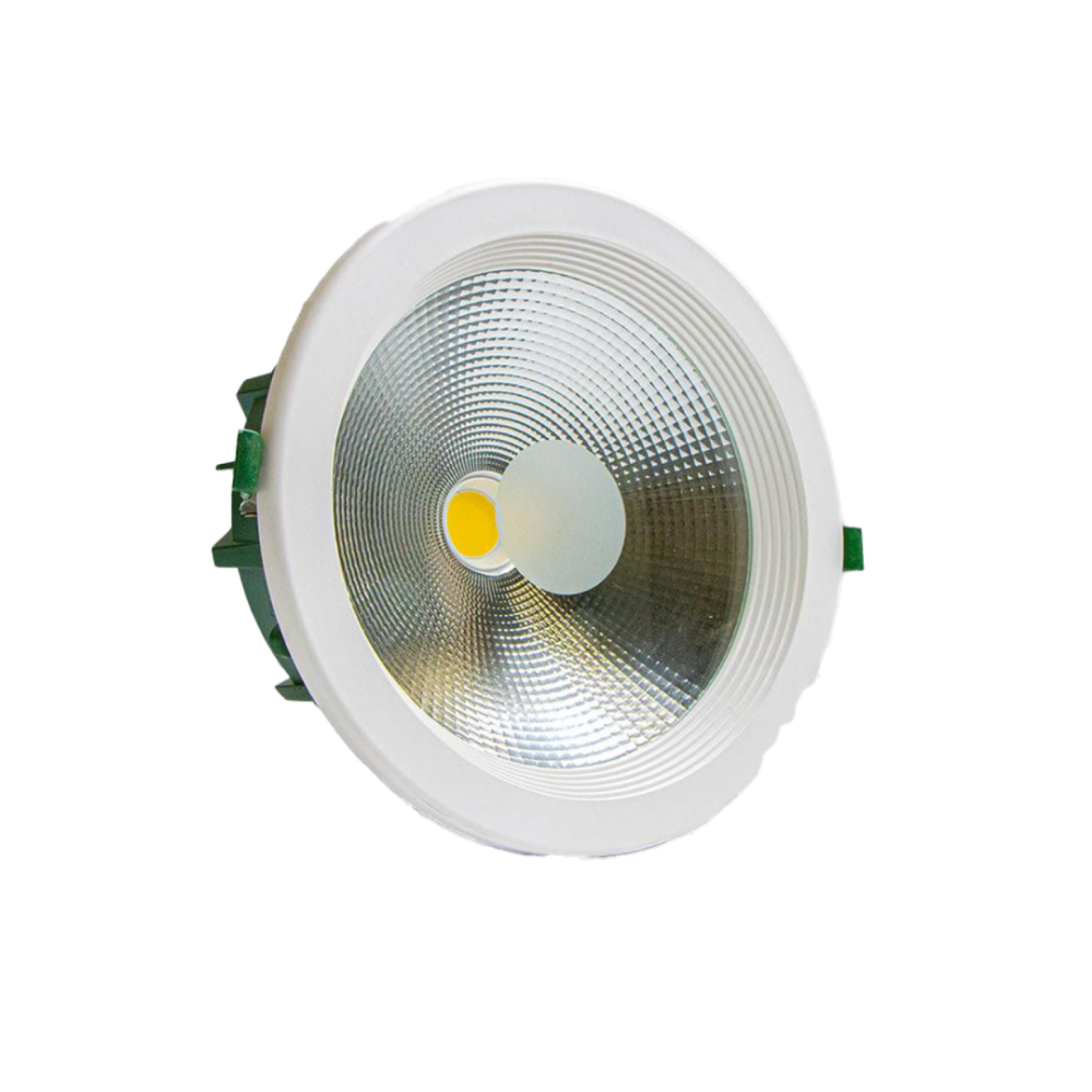 مصباح إضاءة غائر (Downlight) من نوع COB LED، يتميز بتصميم دائري باللون الأبيض. يمكن وصف المنتج كالتالي: