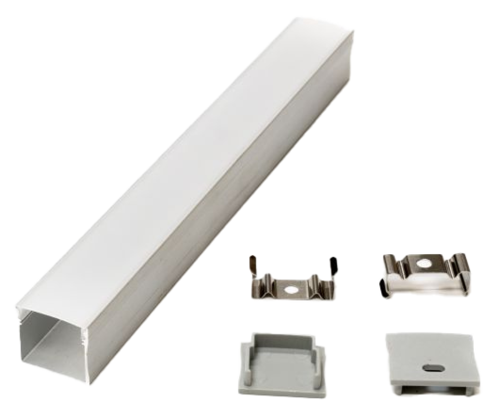 يُستخدم هذا النوع من البروفايلات بشكل أساسي لتثبيت شرائط الإضاءة LED، ويتميز بوجود شفة (حافة) على أحد جوانبه، مما يوفر مظهرًا نهائيًا نظيفًا وأنيقًا.